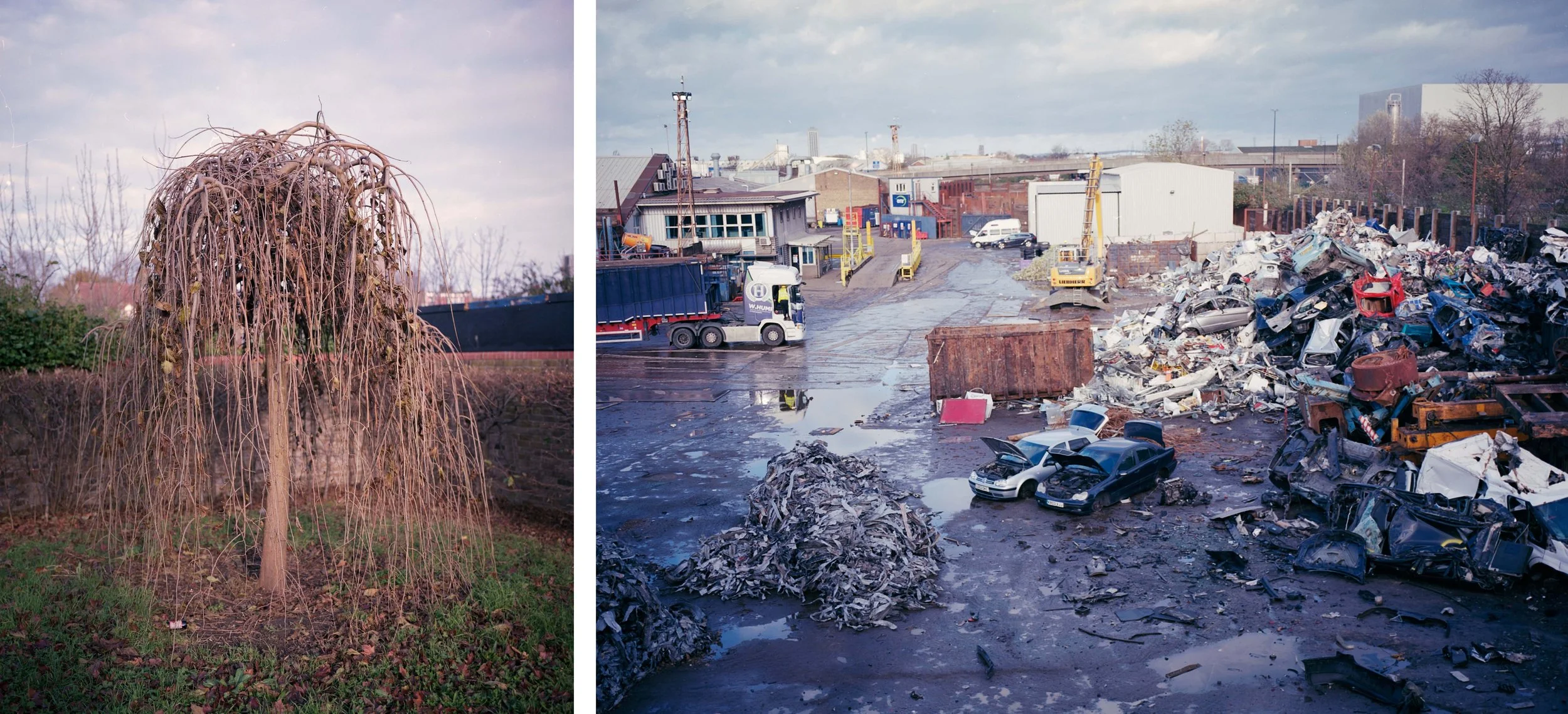 The North Circular, also commonly known as the A406, spans up to 27 miles and was built in 1930 to connect factory workers and industrial communities. Middleburgh’s photographs capture the dreary dullness of the post-industrial remnants; tatters of a legacy found here in a scrapyard in Chingford and there in a weeping willow in Neasden. Decades later, the legacy of urban decay that is a corollary of industrial prosperity, endures in some areas of North Circular: the largest incinerator in Europe is being built in Edmonton.